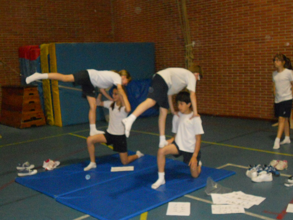 Els alumnes de cinquè han iniciat la unitat didàctica d'acroesport. Estan preparant figures individuals, en parella, en trios i piràmides.Ho fan força bé!!, no us sembla?